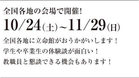 日本全国で開催するイベントに参加して、 立命館大学との絆を深めましょう。
