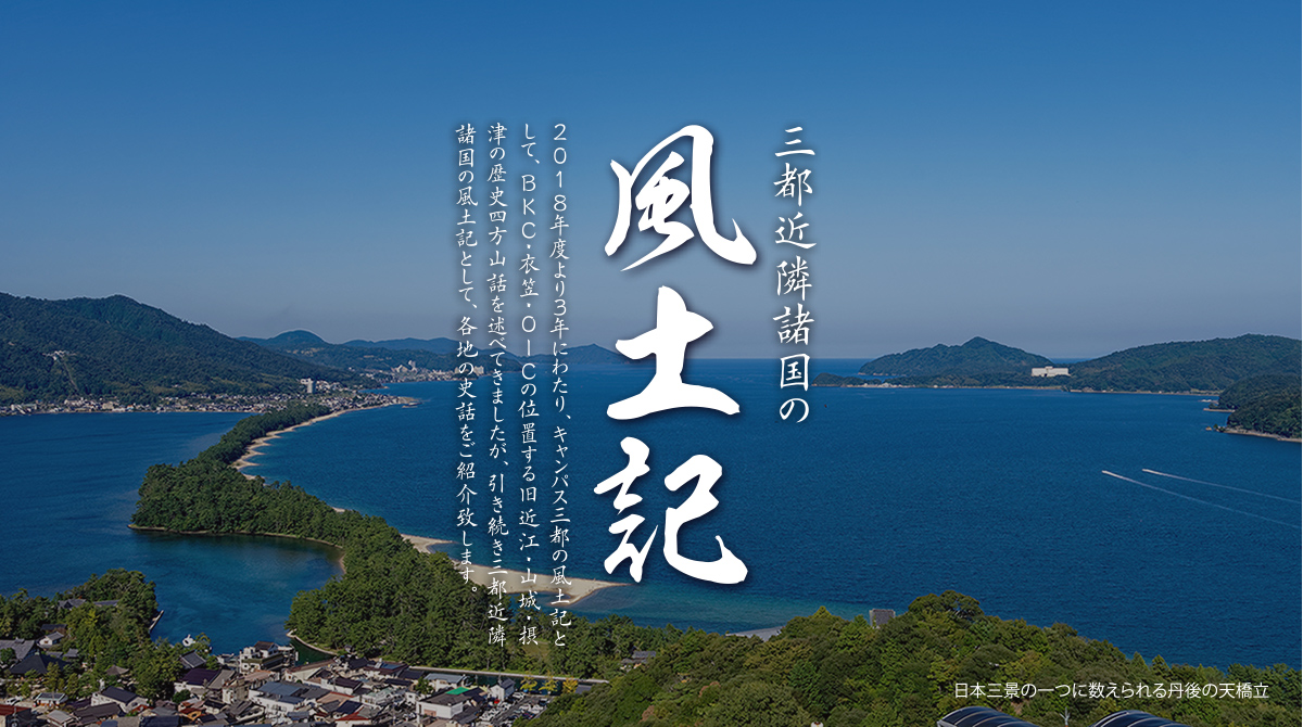 日本三景の一つ天橋立は、丹後半島の東の付け根に位置する南北約3.6キロの砂洲で、伊弉諾命が天に通うために作った梯子が倒れてできたと『丹後国風土記』は伝える。西側の内海は阿蘇海と称され、この内海沿いの一角に国府が置かれた。もとは丹波国の一部であったが、平城遷都後の和銅6年(713)に5郡を分立して丹後国とした。